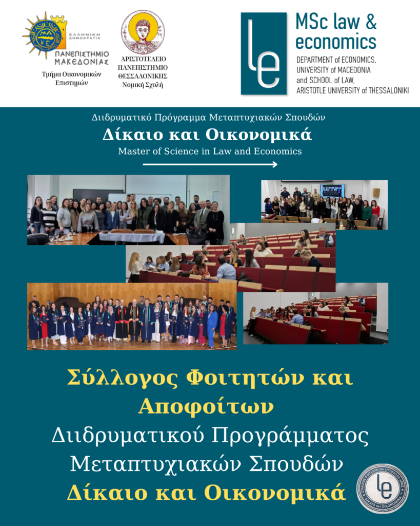 Με επιτυχία πραγματοποιήθηκε η πρώτη ιδρυτική συνέλευση του Συλλόγου Φοιτητών και Αποφοίτων του ΔΠΜΣ «Δίκαιο και Οικονομικά», την Κυριακή 29 Μαρτίου 2026, στο Αμφιθέατρο 10 του Πανεπιστημίου Μακεδονίας. Η συμμετοχή των φοιτητών και αποφοίτων ήταν ενθουσιώδης, υπογραμμίζοντας το κοινό ενδιαφέρον για τη δημιουργία ενός ενεργού και δυναμικού συλλόγου.